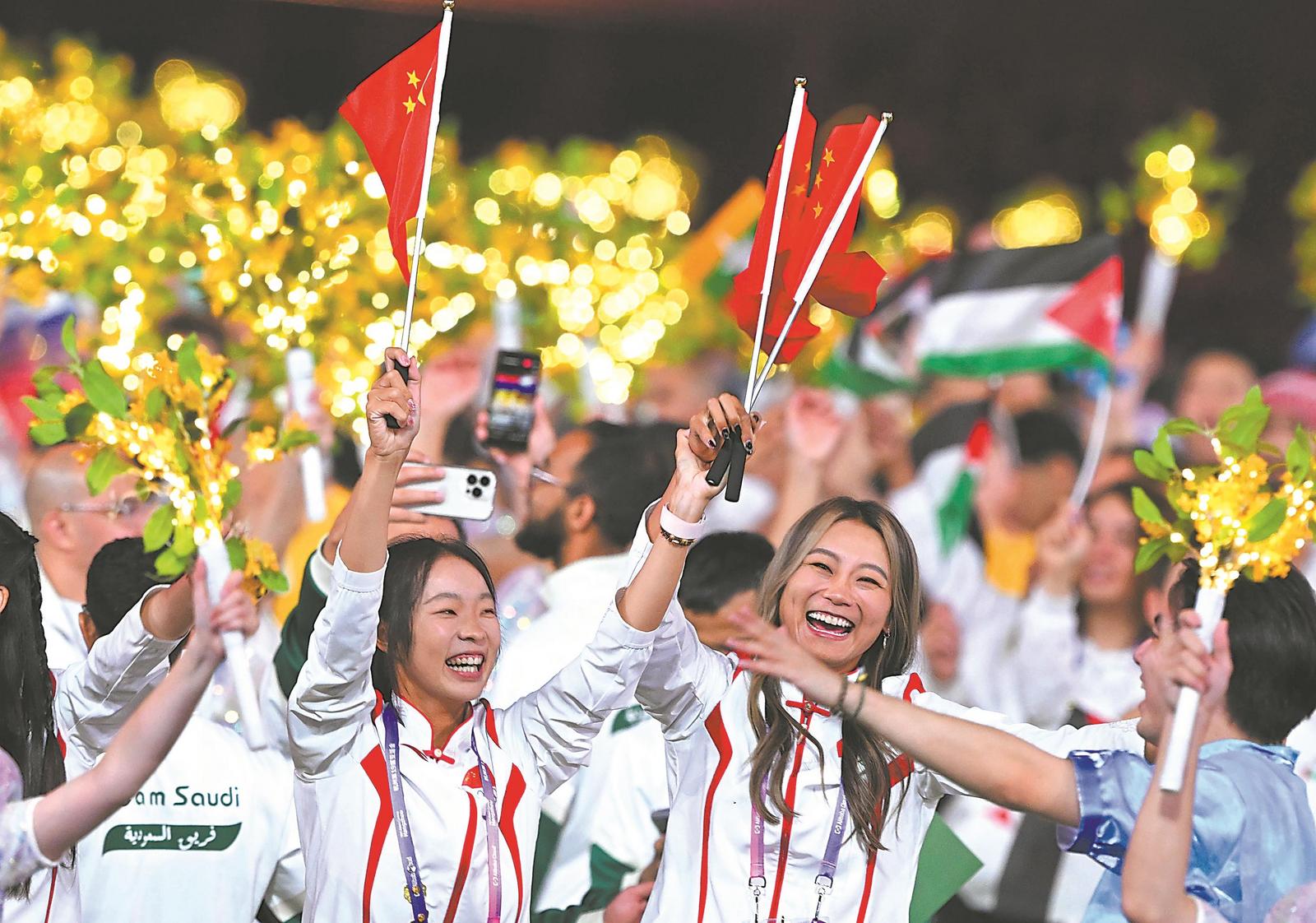 俞思源夺取赛艇女子八人单桨有舵手项目桂冠,唐君瑶刺落击剑女子重剑团体铜牌,牛春格获得女子撑竿跳高季军,刘学丹、周梦雪、刘玉婷、张桂思名列女子手球第三……这些“00后”新锐在各自的赛场上挥汗拼搏,用优异成绩将青春的高光写入亚运历史。