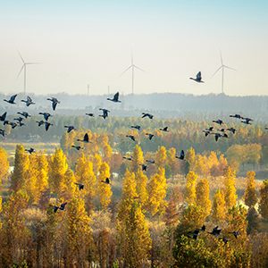 初冬时节,淮北市濉溪县凤栖湖湿地公园里,国槐、梧桐等树木傲然挺立,描绘出属于这个季节的五彩斑斓。