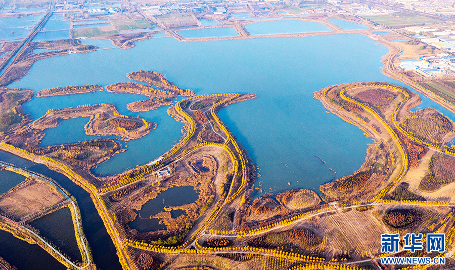 航拍风光旖旎的凤栖湖湿地公园。新华网发 (王圆圆 摄)