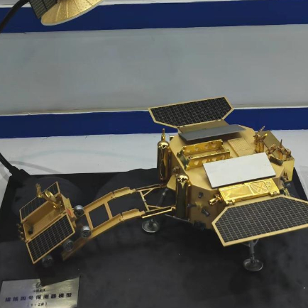 展会现场的嫦娥四号探测器模型。 新华社记者王菲 摄