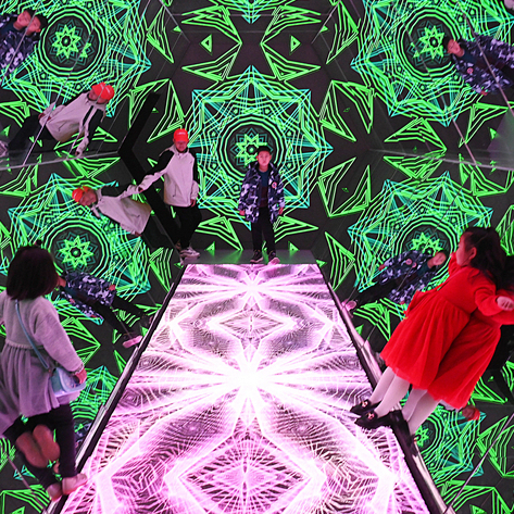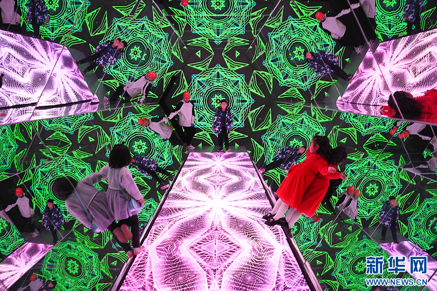 参观者在智能万花筒中体验变幻神奇的光影。