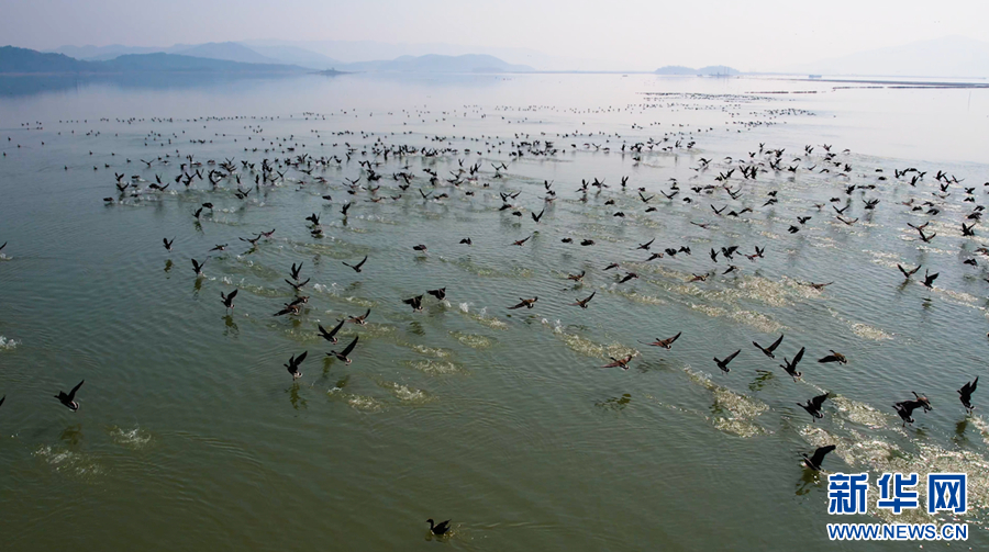 随着冷空气持续南下,大批候鸟开启了迁徙之旅。位于安徽省安庆市宜秀区的菜子湖湿地,因为独特的地理环境,成为了众多候鸟理想的迁徙停歇地、越冬繁殖场所。菜子湖湿地共分布有鸟类142种,水鸟总数约10万只。其中国家重点保护鸟类有12种。近年来,当地通过强化林业监管、水体治理,为候鸟打造出一方“山水湖光生态美”的生存空间。