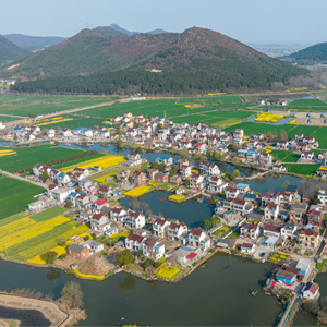 近日,在安徽省马鞍山市当涂县护河镇,金灿灿的油菜花、绿油油的小麦与群山、村庄、田园、河流、道路相映成趣,构成一幅美丽的春日田园画卷。