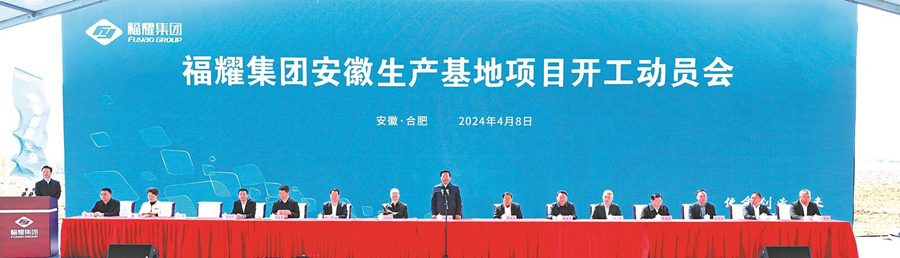 4月8日上午,福耀集团安徽生产基地项目开工动员会在合肥举行。省委书记、省人大常委会主任韩俊出席并宣布项目开工。本报记者 杨 竹 摄