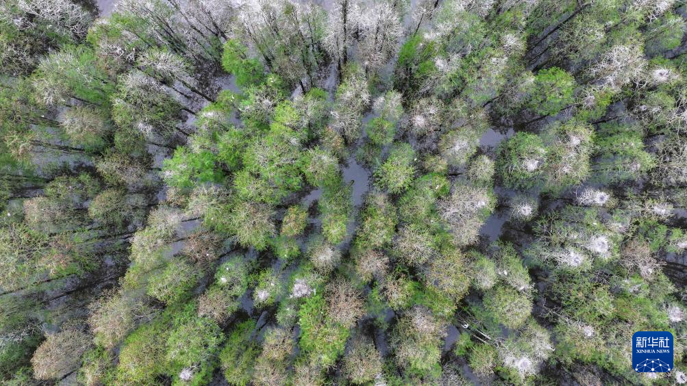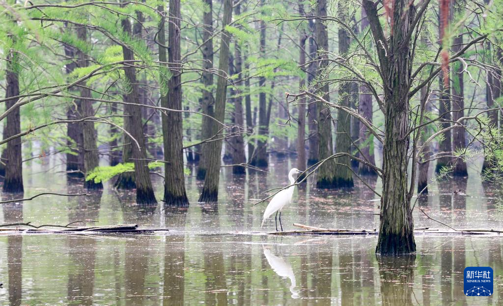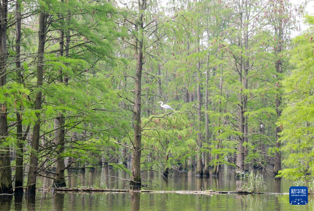位于安徽省滁州市来安县的池杉湖国家湿地公园经过多年的生态修复,数万株池杉树形成独具特色的“水上森林”湿地景观,成为鸟类栖息的“天堂”。