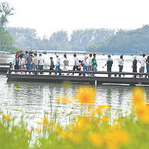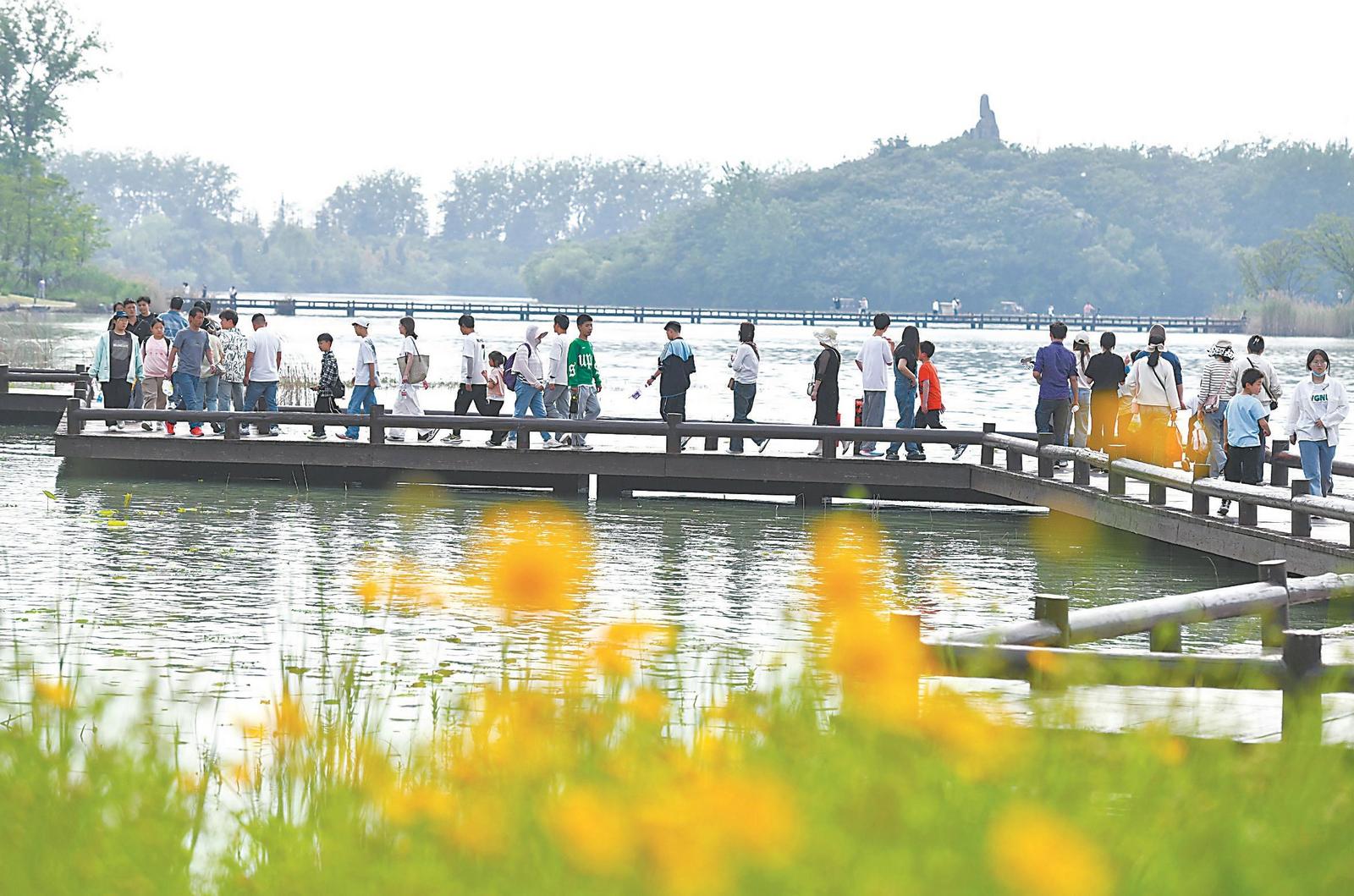 人们在阜阳市颍州西湖游玩。通讯员 卢启建 摄