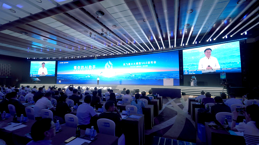 6月27日,讯飞星火大模型V4.0发布会现场。 新华网发(吴骏华 摄)