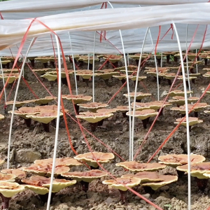近日,在安徽省宣城市旌德县云乐镇4000亩深山林下仿野生灵芝基地,游客近距离体验灵芝生长培育和深加工全过程。