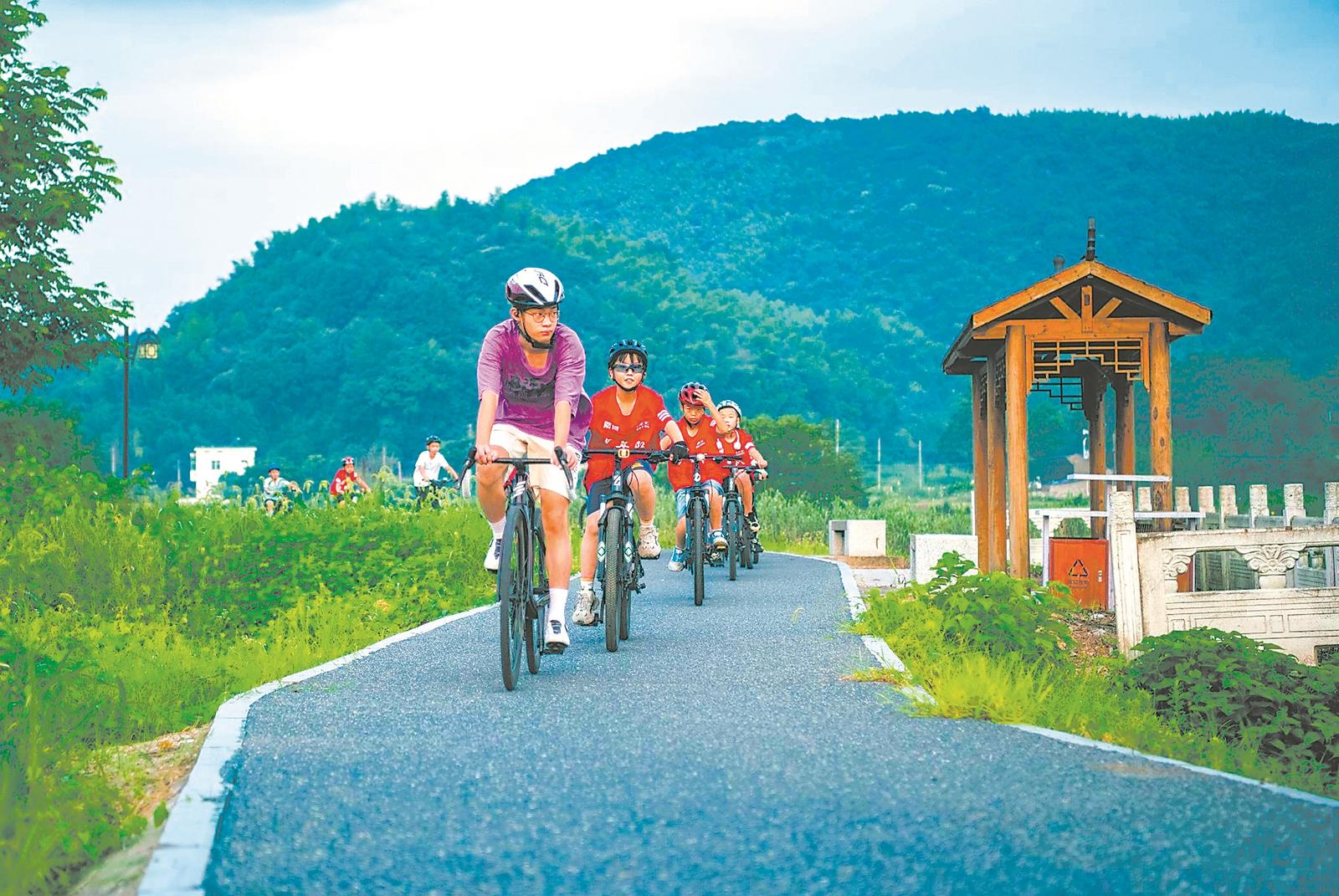 7月23日清晨,芜湖市繁昌慢谷旅游度假区,孩子们在峨溪河畔风景骑行步道上骑行晨练。本报通讯员 肖本祥 摄