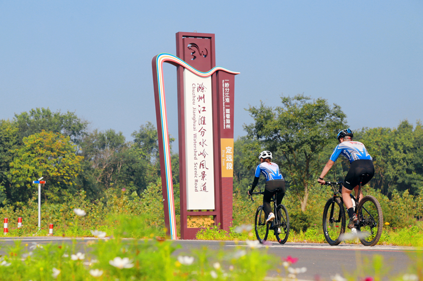 骑行爱好者在江淮分水岭风景道定远段骑行。(滁州市文旅局供图)