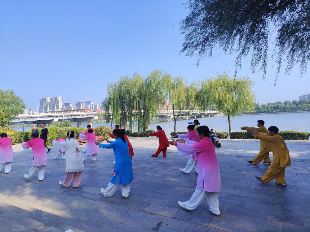 9月10日早晨,亳州市民在五禽戏习练点习练五禽戏。(姜刚 摄)