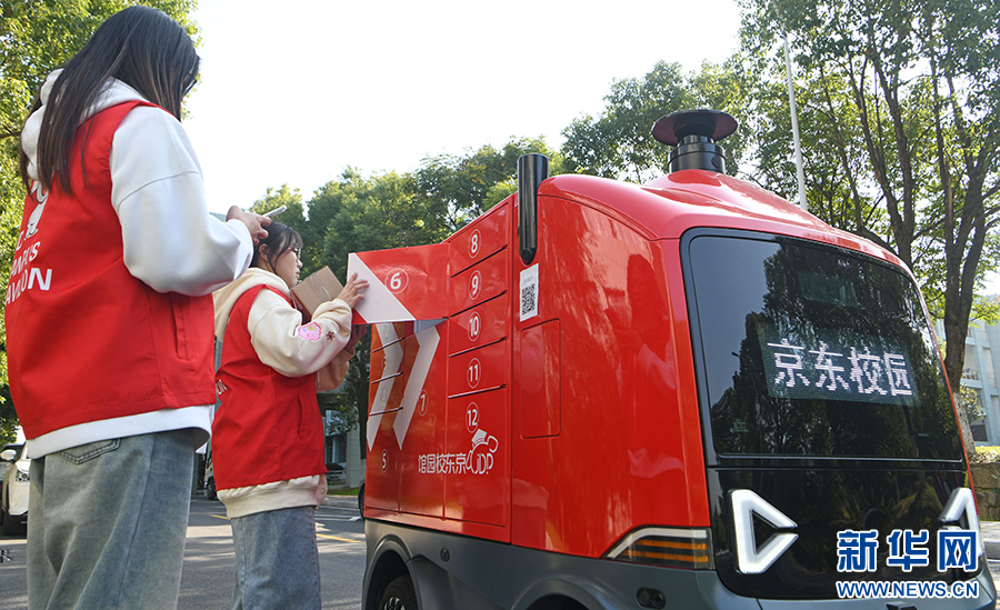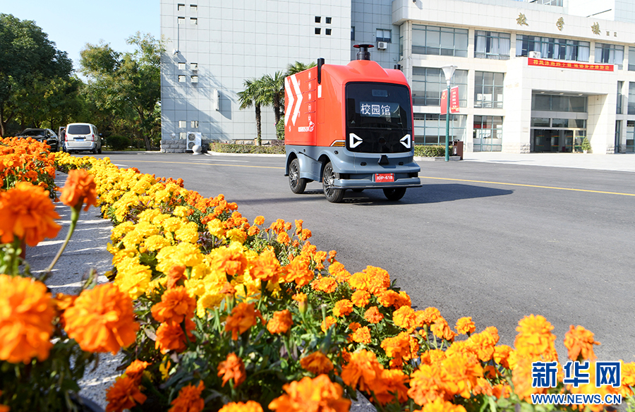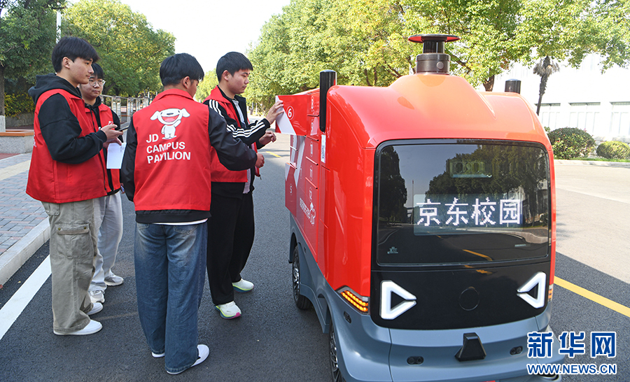 “双十一”前夕,安徽淮南联合大学学生通过校园快递无人车开展智慧物流实训,掌握实用技能。