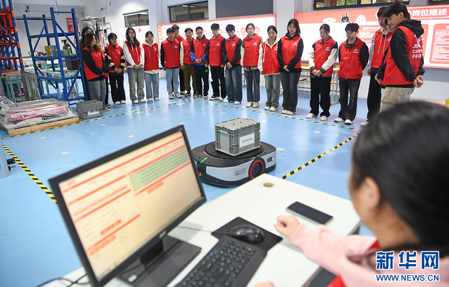“双十一”前夕,安徽淮南联合大学组织学生学习智慧物流知识,掌握实用技能。