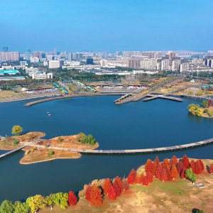 冬日时节,漫步在安徽省马鞍山市节庆广场,蜿蜒前伸的公园小径,树影婆娑的红杉林,与如镜的湖水相得益彰,引得游人沉醉在这滨河亲水空间之中。