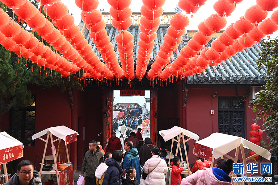 2月3日,立春,合肥城隍庙文化庙会人头攒动。张灯结彩,红红火火,喜迎春归。从1月31日(正月初三)至2月4日(正月初七),由合肥市文化和旅游局主办、合肥市文化馆承办的合肥市第三十一届新春文化庙会“逛庙会唱大戏”文艺系列演出连续上演,为市民和游客带来丰富多彩的文艺节目。新华网发(杨晓原 摄)