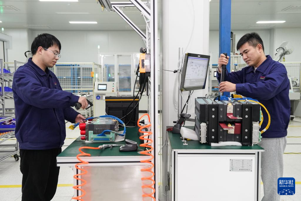 3月11日,工人在安徽元隽氢能科技股份有限公司检测氢燃料电池。