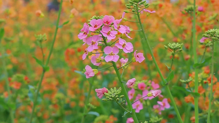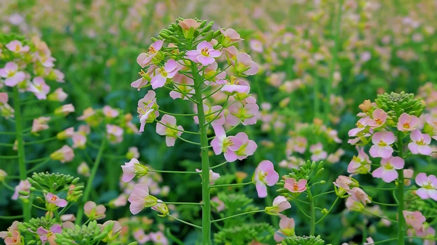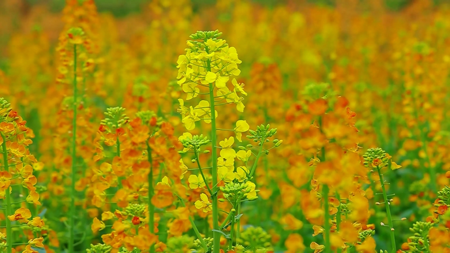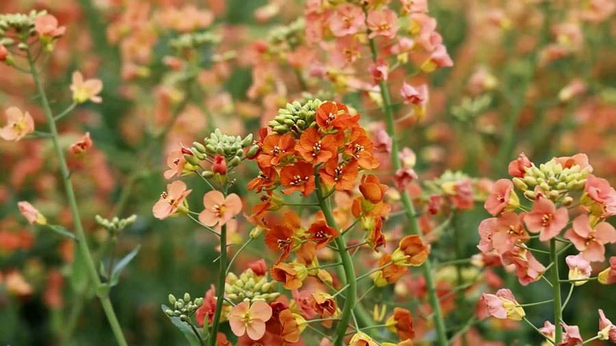 阳春三月,安徽省望江县太慈镇桃岭村的彩色油菜花竞相绽放,明黄与橙红交织,浅粉与淡紫晕染,“七彩花田”仿佛一幅生动的油画,惊艳了春日的时光。