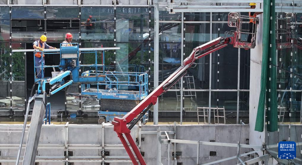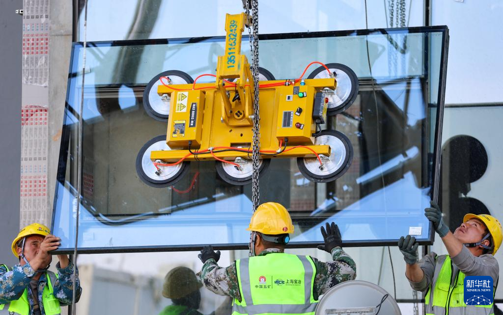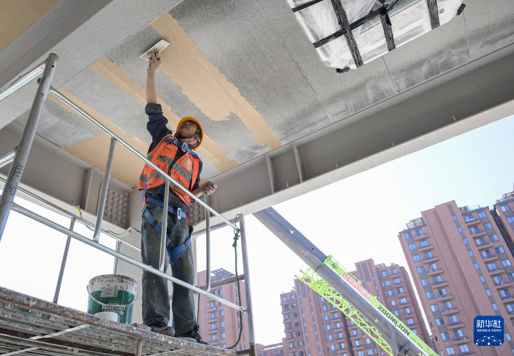 5月1日,在河北省石家庄市太平河片区石家庄美术馆建设现场,上海宝冶集团有限公司工人进行施工作业。