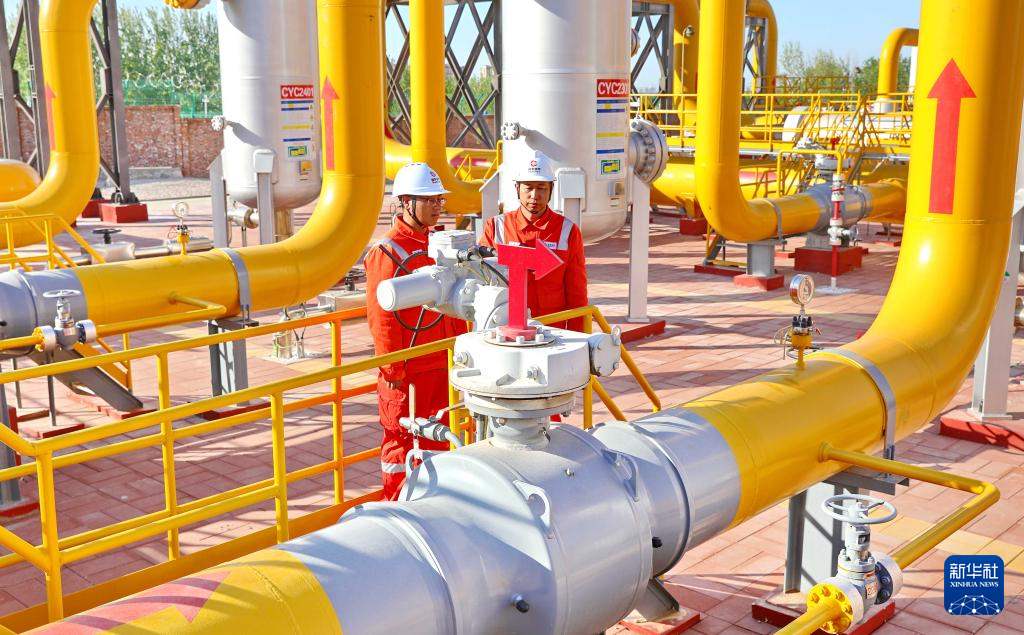 5月1日,在河北省秦皇岛市海港区的国家管网北方管道秦皇岛联络压气站内,技术人员对中俄东线天然气管道线路设备设施进行日常巡检。