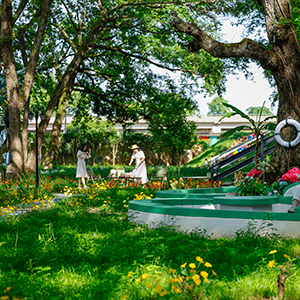5月13日,游客在安徽省黄山市徽州区西溪南镇“西西里秘境”游玩赏景。