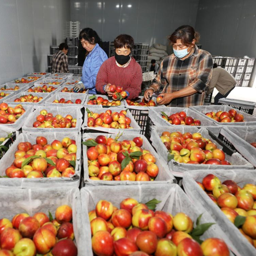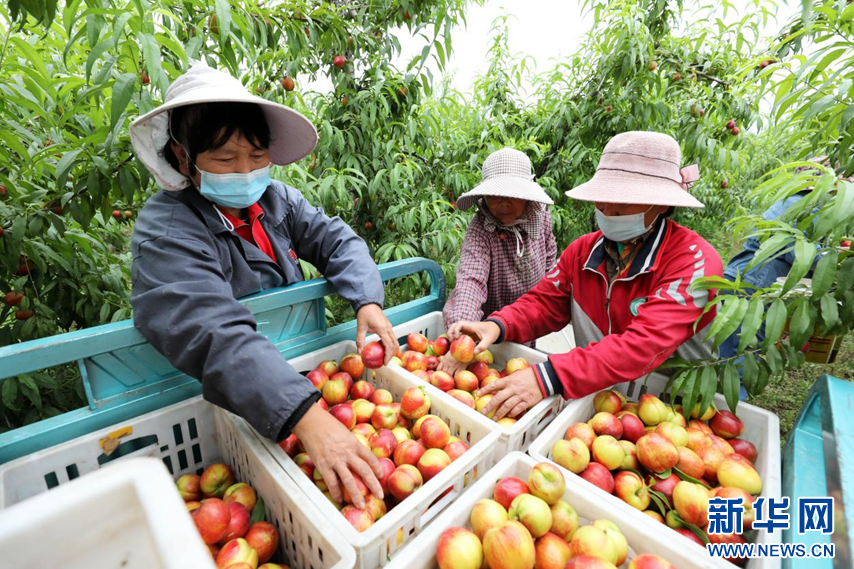近日,安徽省淮北市烈山区烈山镇青谷社区碧桃家庭农场300余亩桃园进入成熟收获期,工人忙着采摘、分拣、装箱,供应市场。