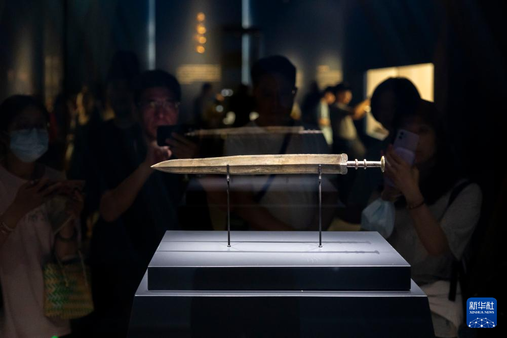 6月15日,在上海市闵行区博物馆,观众参观“越王者旨于赐”剑。