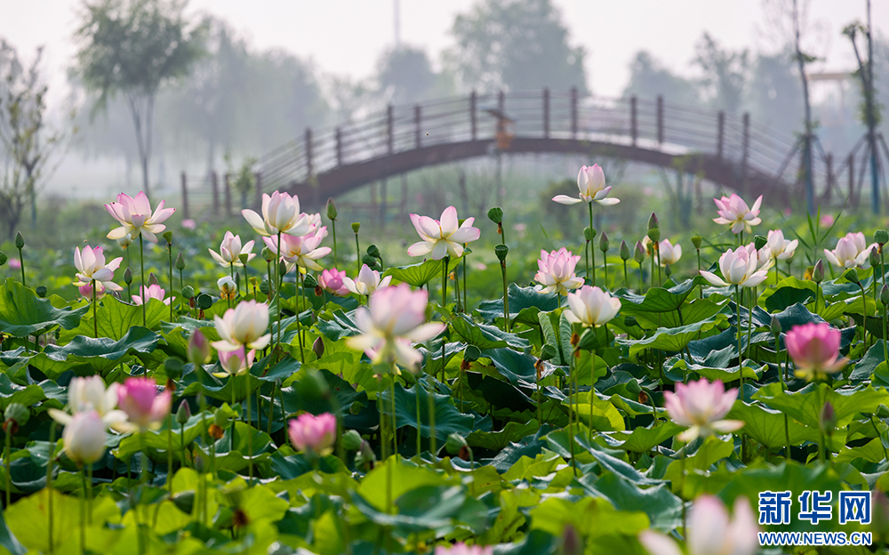 近年来,杜集区在治理采煤沉陷区的同时,大力发展荷花产业,丰富荷花产品供给,推进田园景观、休闲、民宿、自然生态与荷花文化的深度融合,助力乡村美、生态优、产业兴、百姓富。新华网发(王文 摄)