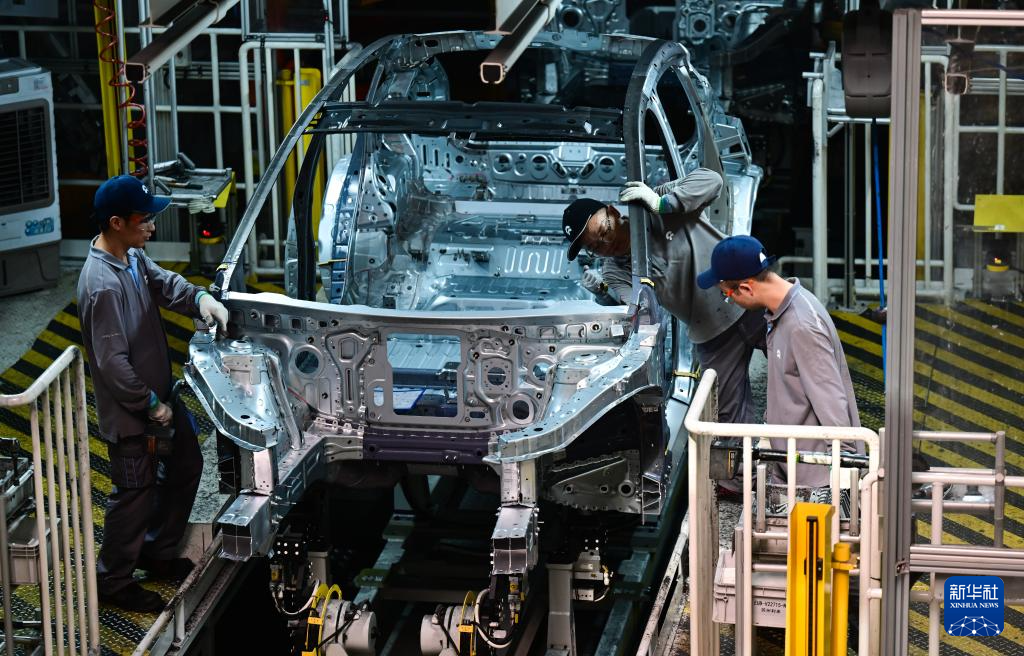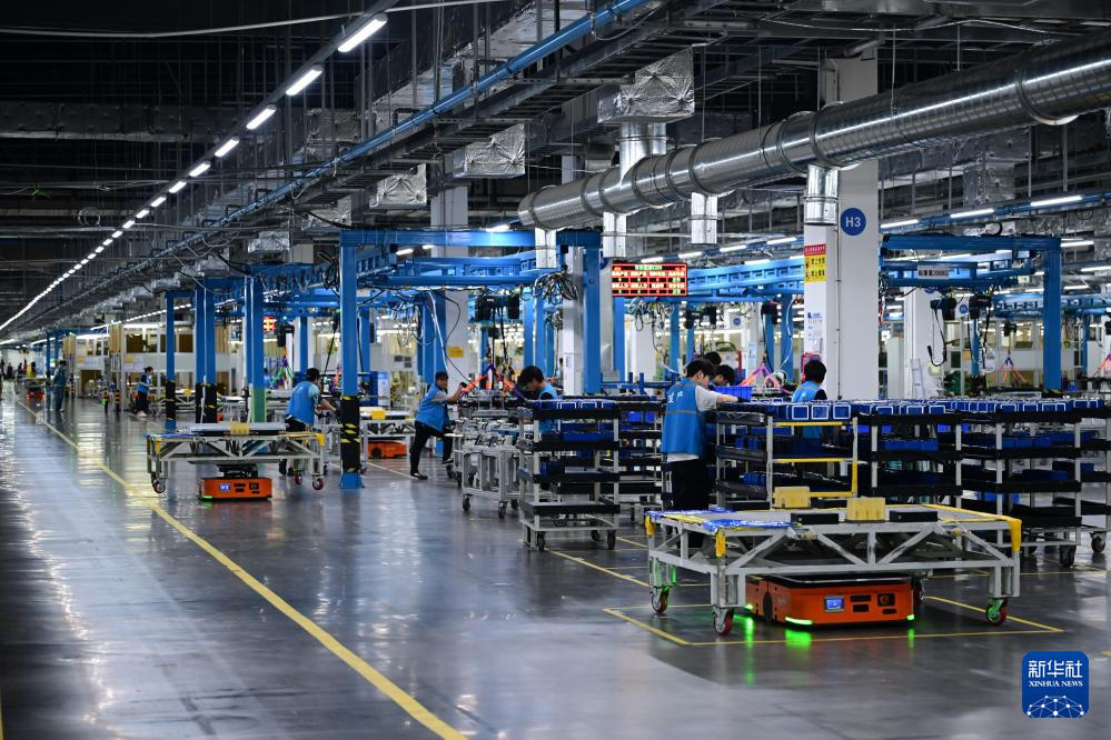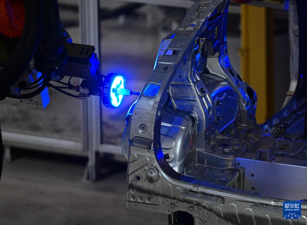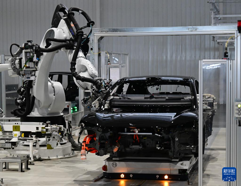这是位于合肥市肥西县的江淮汽车尊界超级工厂内的自动化焊接生产线,该工厂是江淮汽车携手华为专门为尊界品牌打造的工厂。新华社发