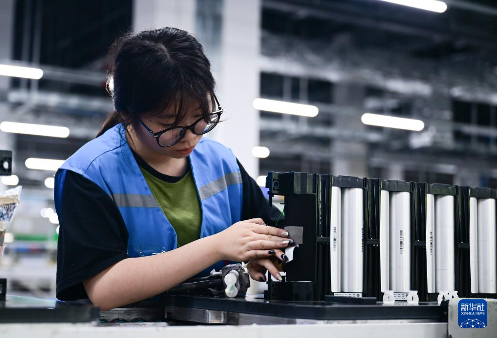 6月30日在华霆(合肥)动力技术有限公司拍摄的电池包生产线。该公司主要设计、制造和销售电动汽车的定制电池系统,为全球新能源车企提供电池包产品。新华社记者 周牧 摄