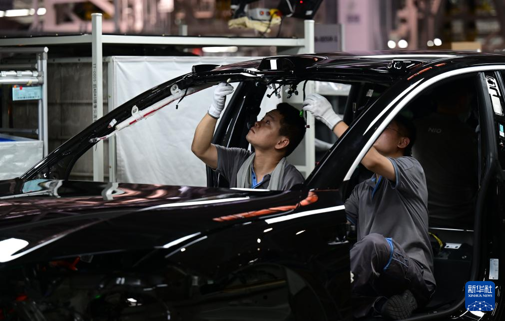 7月1日在合肥市新桥智能电动汽车产业园蔚来第二工厂拍摄的新能源汽车生产线。新华社记者 周牧 摄