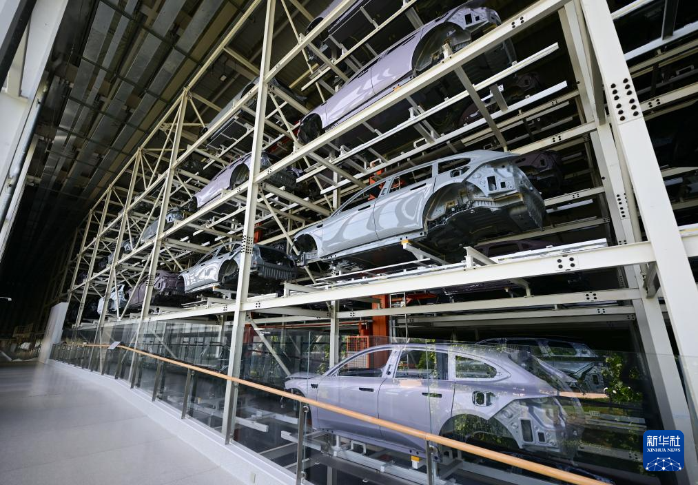 7月1日在合肥市新桥智能电动汽车产业园蔚来第二工厂拍摄的“魔方”车辆存取平台。新华社记者 周牧 摄