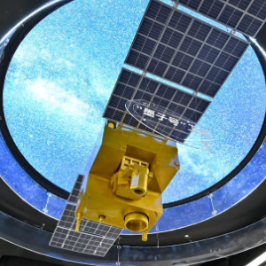 这是在中电信量子信息科技集团有限公司的科技体验馆内拍摄的“墨子号”量子卫星模型(7月1日摄)。