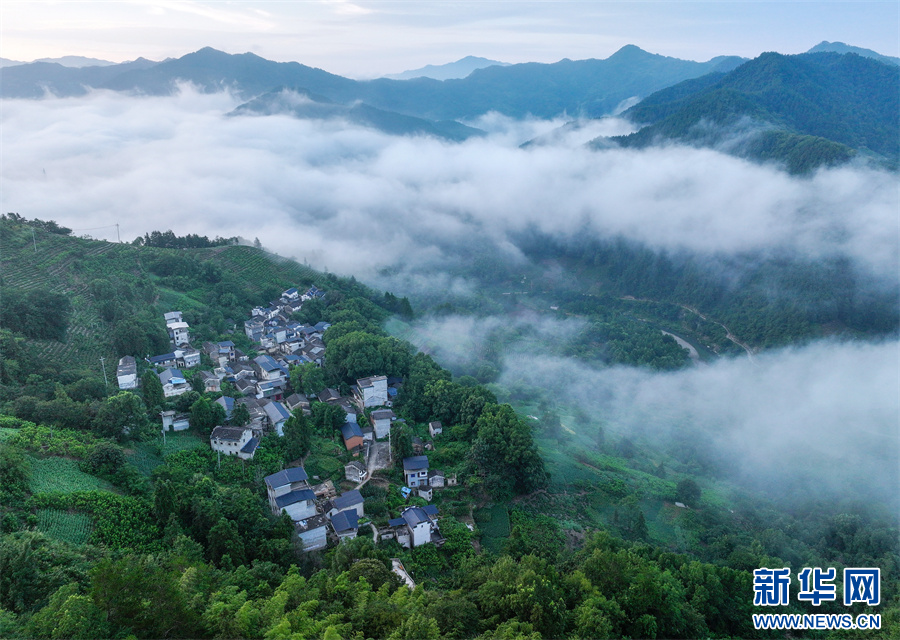 8月5日,在安徽省黄山市歙县霞坑镇石潭古村拍摄的云海美景。