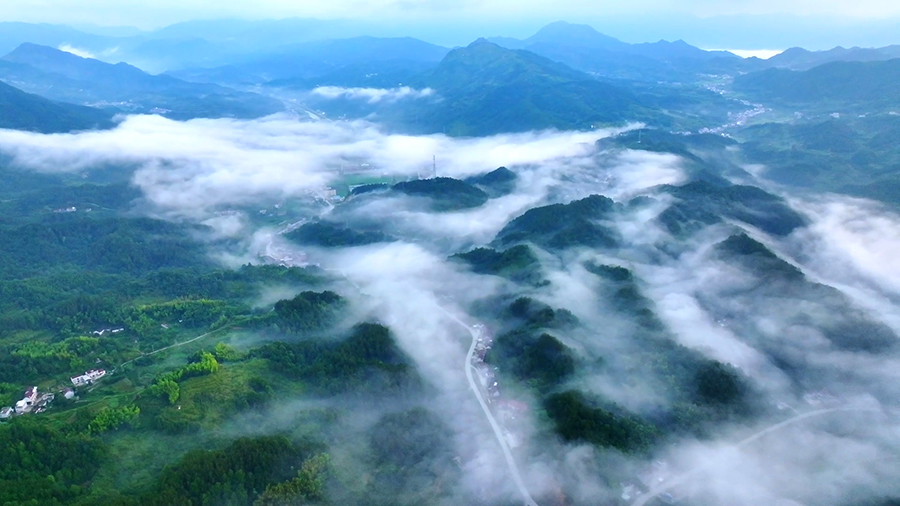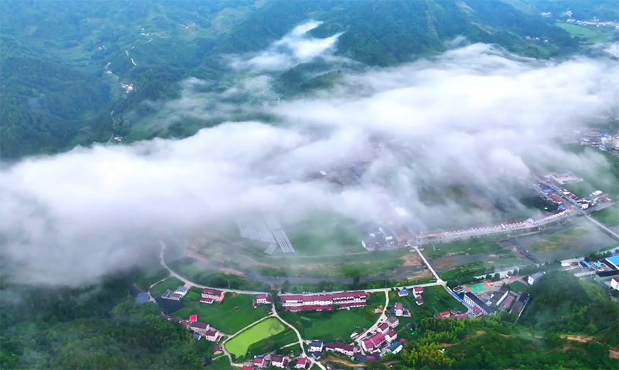 安徽太湖:薄雾笼山乡 美丽如画卷
