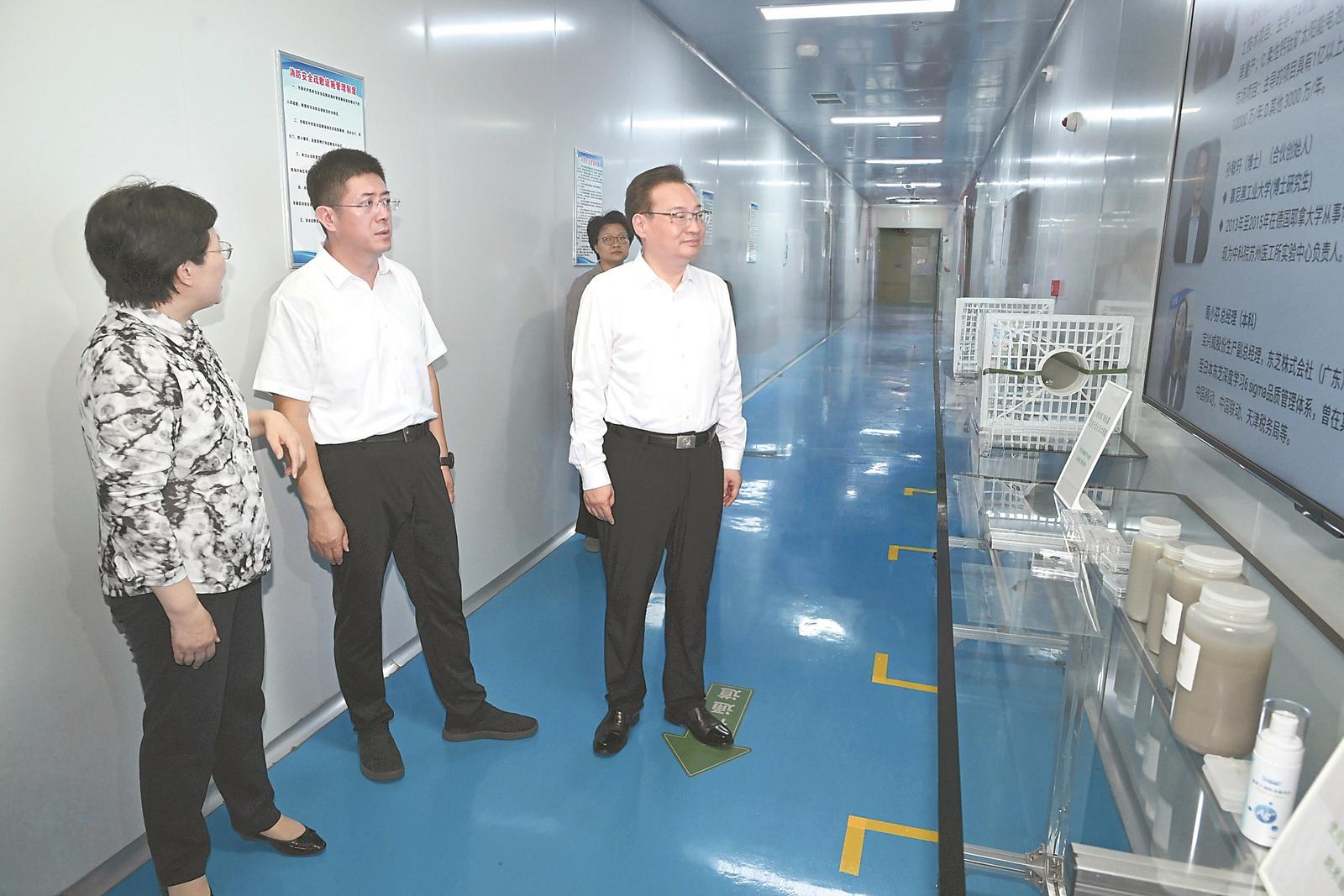 8月5日上午,省委书记梁言顺在亳州市亳芜现代产业园调研并随机走访企业。本报记者 杨竹 许昊 摄