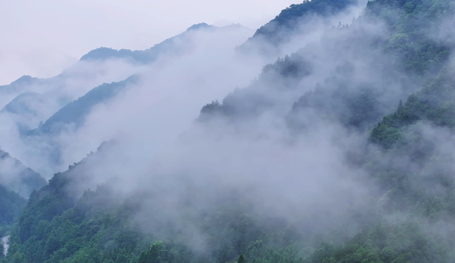 近日,位于安徽省石台县的白石岭古村落雨后初霁,层峦叠嶂间云涛舒卷,宛如一幅流动的水墨丹青。(饶治国、张红伍)