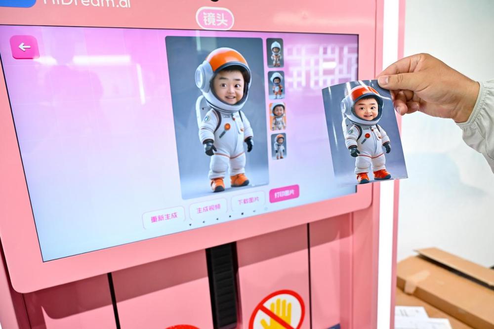 一名观众在人工智能初创企业智象未来(合肥)信息技术有限公司体验 AI换装(2025年7月2日摄)。新华社记者张铖摄