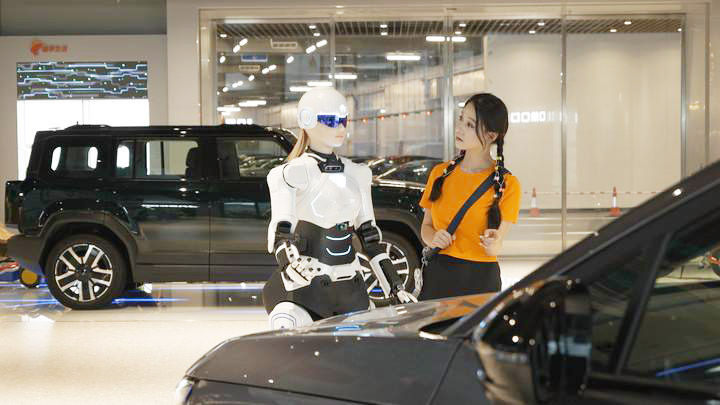 数千公里外,马来西亚一家奇瑞汽车4S店,人形机器人导购墨茵已工作近半年。墨茵身高1.67米、体重65公斤,由奇瑞子公司安徽墨甲智创机器人科技有限公司开发,最快行走速度为每秒1米,具备多模态感知、自主路径规划及大模型交互的能力。