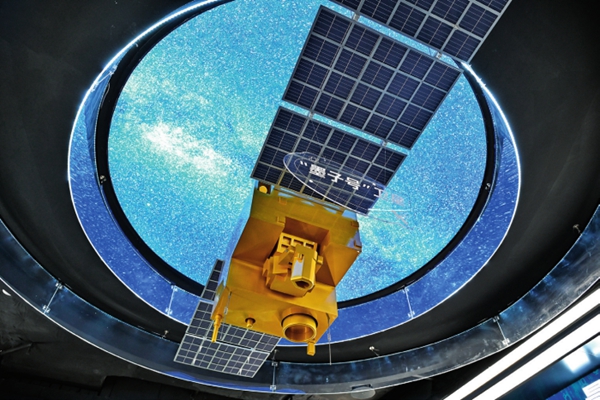 在位于合肥的中电信量子信息科技集团有限公司科技体验馆内的“墨子号”量子卫星模型(2025年7月1日摄)张铖摄/本刊