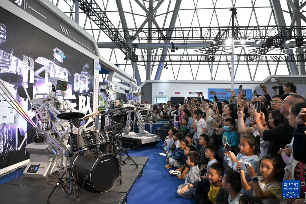 9月20日,观众在2025世界制造业大会上观看机器人乐队表演。