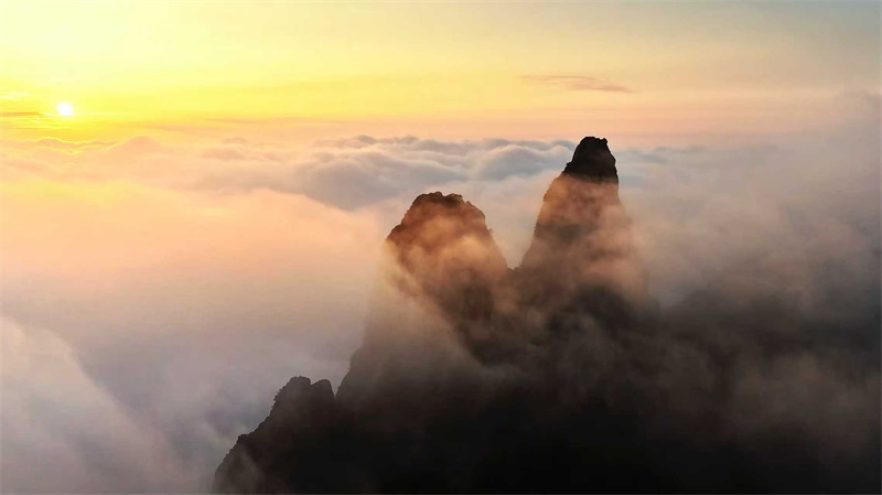 近日,位于安徽省池州市的九华山风景区云雾缭绕。陡峭的峰林探出身姿,宛如精心雕琢的神秀雕塑;云海如浪涛般层层铺展,被轻柔洒落的晨光映照着,如梦似幻。