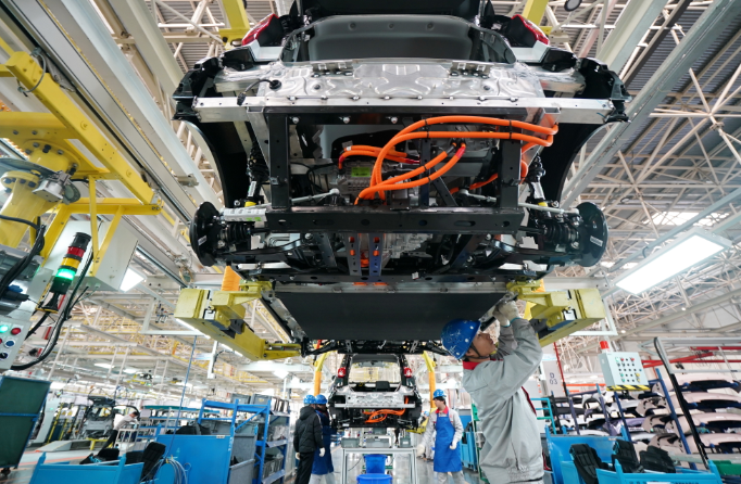 2024年3月19日,奇瑞新能源汽车股份有限公司石家庄分公司的工人在总装车间生产线上工作。(新华社)