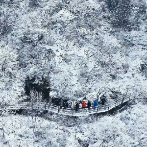 近日,安徽省池州市九华山花台景区降下冬雪。皑皑白雪与嶙峋山石相映成趣,处处银装素裹,宛若一幅写意山水画卷。(饶治国、方皓宇)