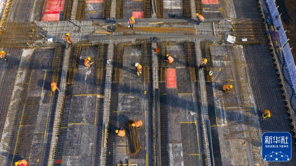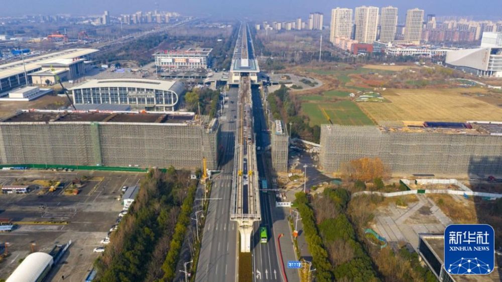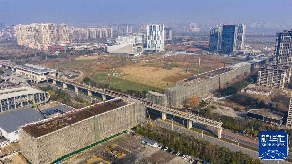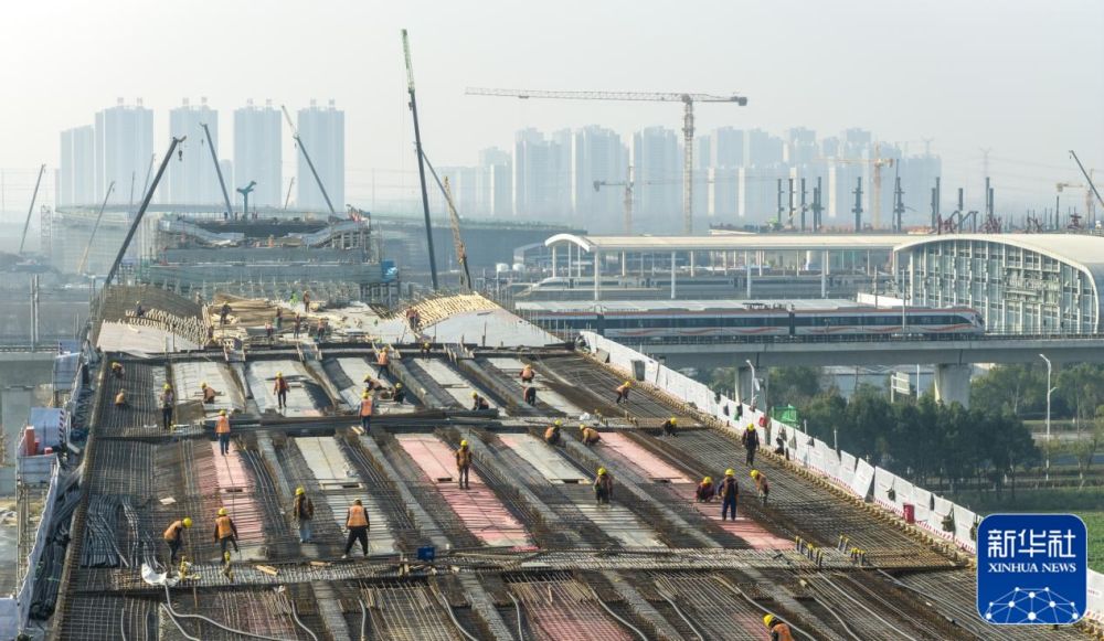 12月25日拍摄的北沿江高铁滁州站站城一体融合发展项目涉铁段施工02标段施工现场。新华社客户端发(徐坤 摄)