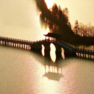 安徽芜湖:薄雾锁江南 南湖映朝阳