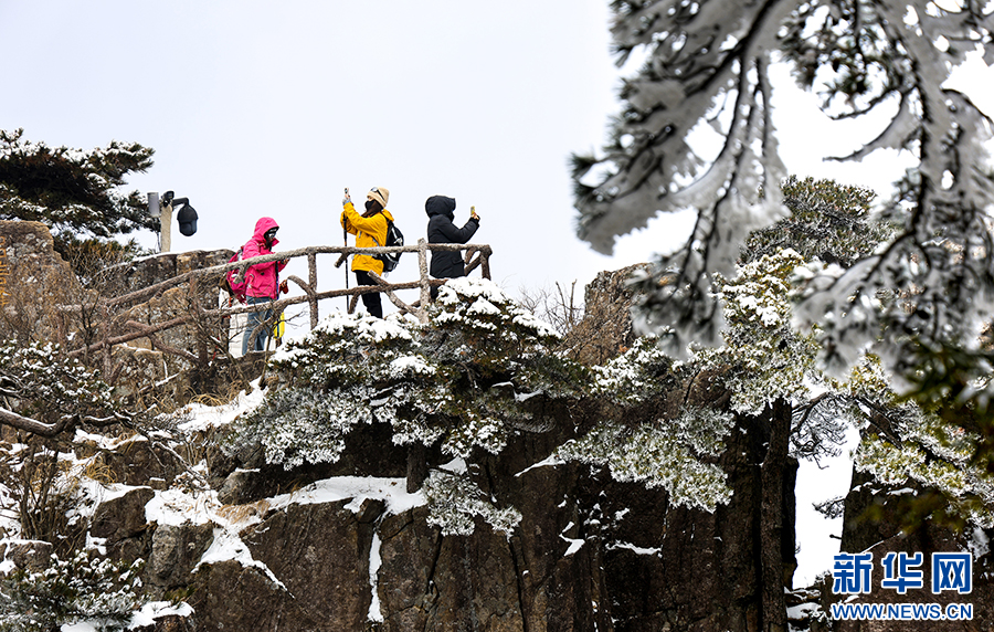 12月25日,游客在安徽省黄山风景区欣赏雪后美景。新华网发(樊成柱 摄)
