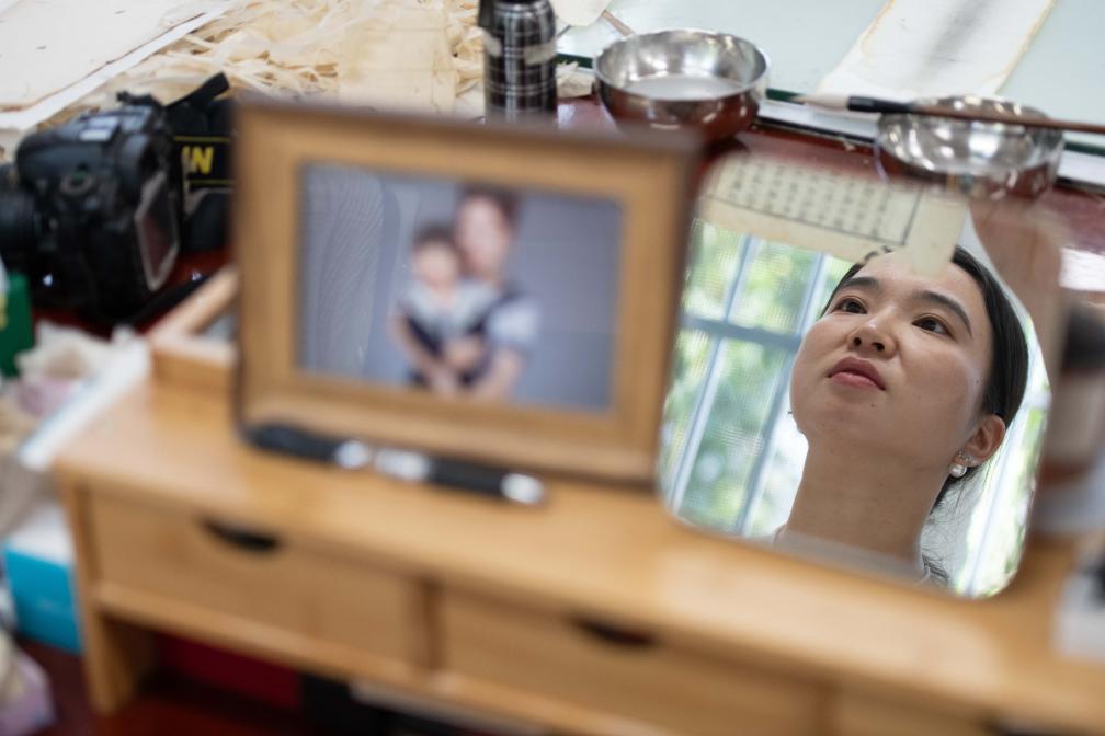采访中,我的目光总会被细节吸引:晨光透过枫杨树叶,洒落在工作台上;喷壶喷出的雾状水汽轻轻湿润泛黄书叶;修复师以指尖承托着需要拼接的碎纸片,动作轻柔。6位“修书人”用耐心、细心和静心,在破损书叶间打捞流失的文明记忆,而我的镜头,则试着留存那份让文脉延续的信念。