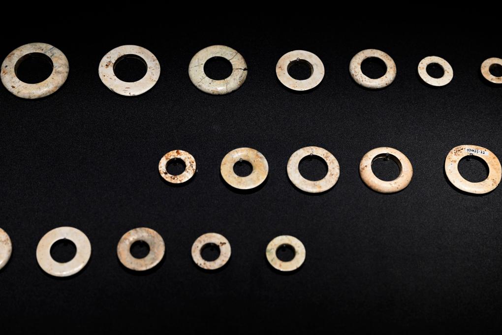 这是凌家滩遗址博物馆内展出的玉器(2025年12月24日摄)。