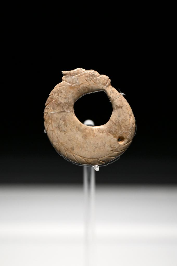这是凌家滩遗址博物馆展出的玉龙(2025年5月16日摄)。