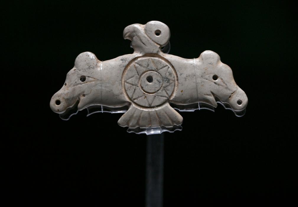 这是凌家滩遗址博物馆展出的玉鹰(2025年5月16日摄)。